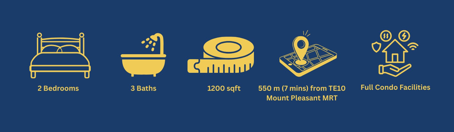 Located about 7 minutes’ walk to Mount Pleasant MRT, with convenient access to nearby schools, supermarkets, and shopping malls.