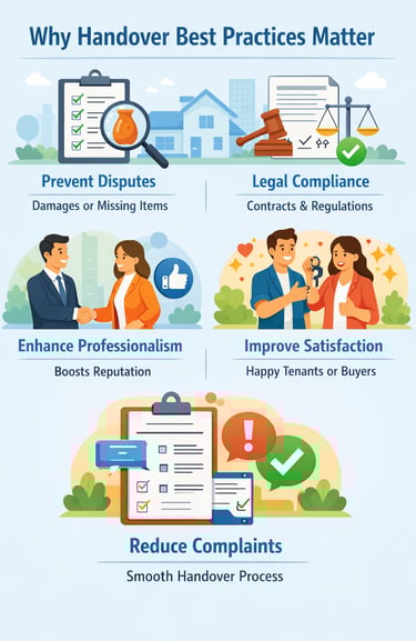 Discover essential handover best practices for smooth property transitions. Learn how to manage inspections, documentation, checklists, and utility transfers to avoid disputes and ensure a professional handover experience.
